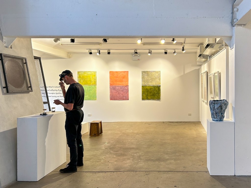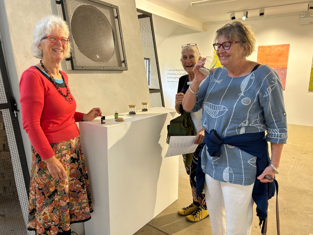 In collaboration with perfumer Jocelyn Fullerton (Cult of Scent), Tammy responded to the prompt and scent designed three fragrances rooted in the nostalgia and transformation of scent memories in the context of climate change and the evolving environmental landscape. Drawing from nuanced experiences, the first fragrance juxtaposed the comforting aroma of fire, once evocative of communal barbecues, with its new association of fear, in light of Australia’s recent bushfires. Additionally, the exhibition delves into shared generational memories, spotlighting the iconic scents of cut grass reminiscent of suburban garden weekend rituals and coconut oil, a reminder of sun-soaked days when individuals would bask on beaches, layering themselves with the fragrant product. In an effort to further inspire dialogue and extend the thematic scope, the space is suffused with a custom-created ‘scent of hope’, resulting in an ethereal blend dominated by bergamot. This aromatic inclusion serves a dual purpose, fostering deeper engagement within the gallery space and offering visitors an anchoring point for conversations about the exhibited works and broader thematic concerns.
