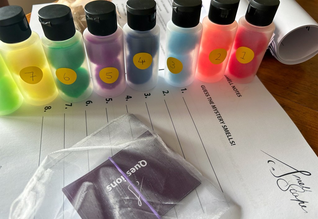 SmellScape (2023) is a vibrant tabletop game designed to stimulate the olfactory senses and facilitate collaborative discussions about the mysterious world of scents. First presented at Surry Hills @ Play, where it was heralded as a finalist, this game engages players in identifying, discussing, and sharing their personal relationships with various scents. From easily recognizable aromas like chocolate to more nuanced fragrances such as cedarwood, participants from all age groups embark on a three-part journey. They start by silently identifying a scent, then dive into collaborative conversations about their choices, and finally, weave their shared scent experiences into a collective poem using descriptive word cards. The game’s goal isn’t about winning, but rather understanding and celebrating our individual and shared scent memories. It’s a delightful experience for young learners, tabletop enthusiasts, and olfaction aficionados, underscoring the significance of scent in communication, memory, and creativity.